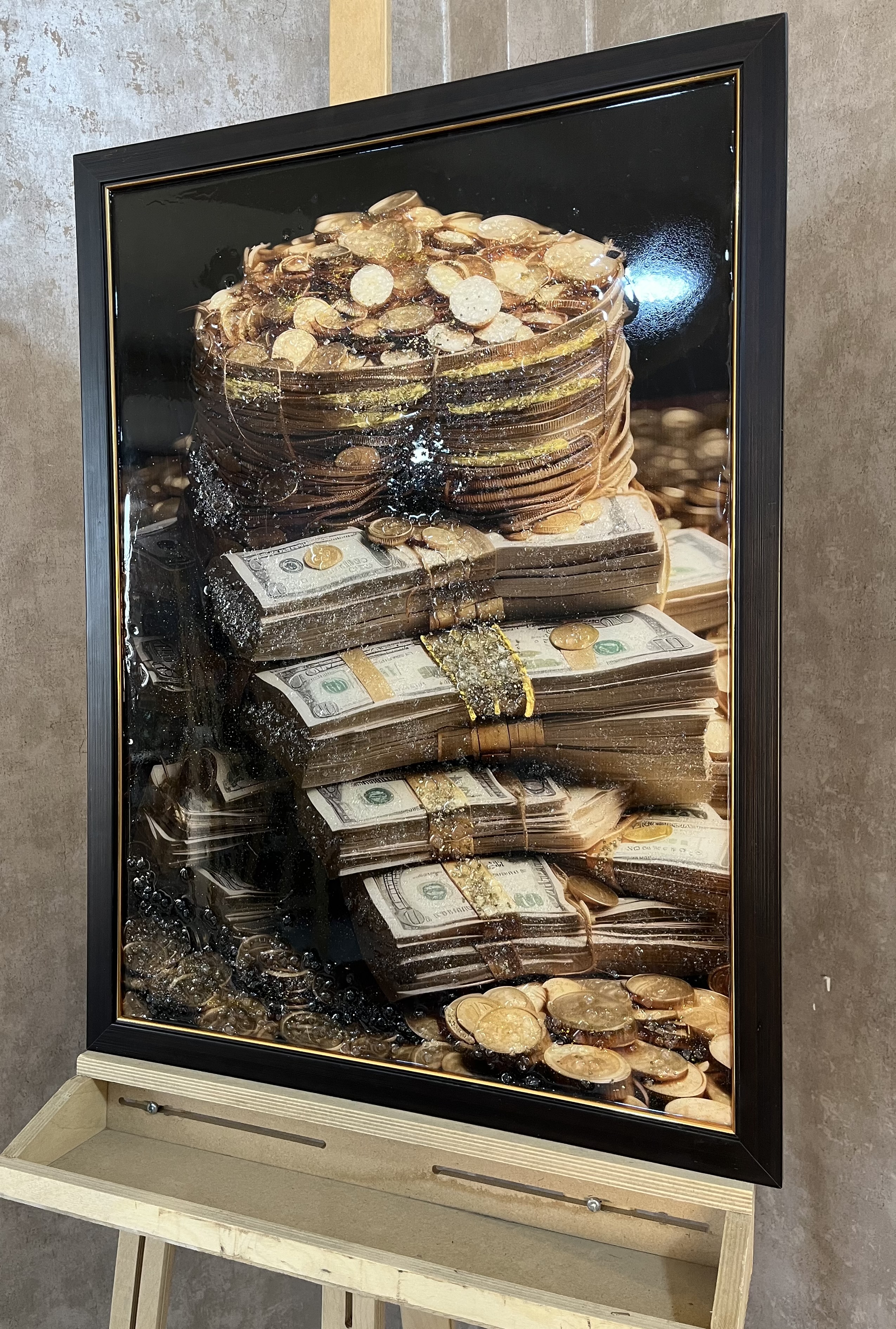 تابلوی دکوراتیو جذب ثروت تلفیقی از هنر رزین و کریستالی فول دیزاین ، سطح شیشه ای براق مناسب دفترکار / صرافی / و هدیه قشنگ ترین هدیه برای کسانی که عاشق ثروتن😍